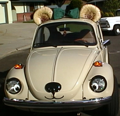 "BEARY", is our 1973 Volkswagon Super Beetle complete with eyes, ears, nose, eyelashes, and even a bow on her head. She even has teddy bear wheels. Her license plates say it all, BEARY QT.